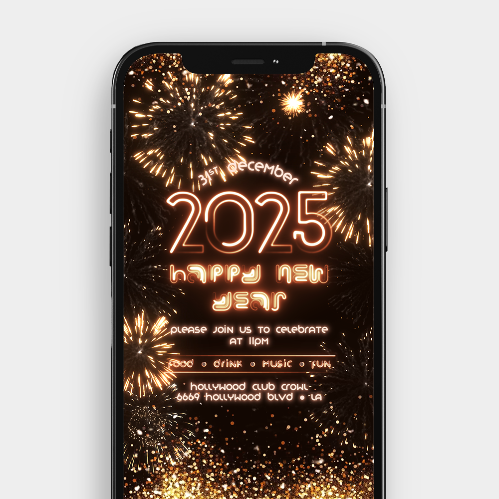 🎆🥂🎉 Elevate your New Year’s Eve 2025 celebration to extraordinary heights with our Fireworks New Years Eve video invitation! Watch fireworks light up the screen as vibrant inscriptions flicker, setting the stage for a night of unforgettable memories. The dazzling pyrotechnics combined with sleek, chic design will excite your guests and create the perfect ambiance for your spectacular event. Make your New Year’s Eve celebration truly unforgettable with this unique, high-impact video invitation. Order now and ensure your guests are as excited as you are for the big night!