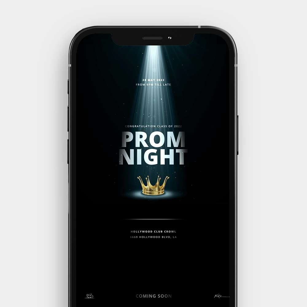 The Spotlight Prom invitation creates an atmosphere of elegance and style, ideal for prom and formal events. Its modern design, inspired by the world of cinema and glamour, helps make every guest feel like a star, building excitement and anticipation for an unforgettable night.
